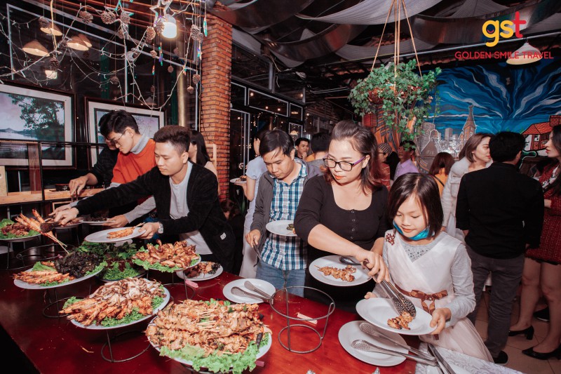 Cả đoàn đã có bữa tiệc buffet ngon miệng