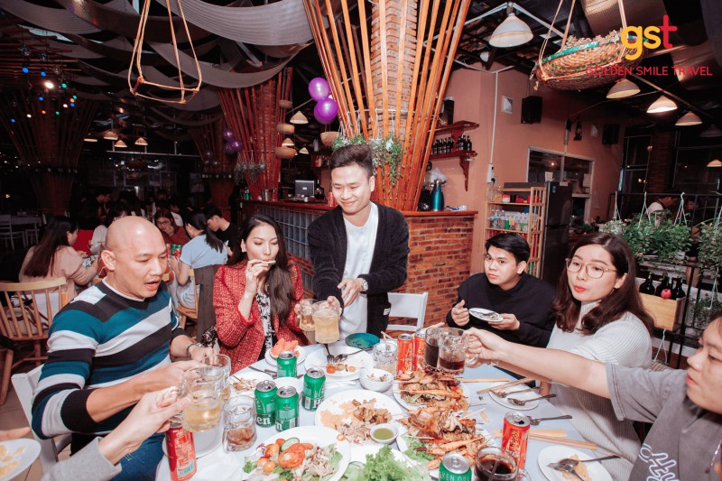 Còn gì tuyệt vời hơn giữa tiết trời đêm Đà Lạt bằng một bữa liên hoan bên đồng đội