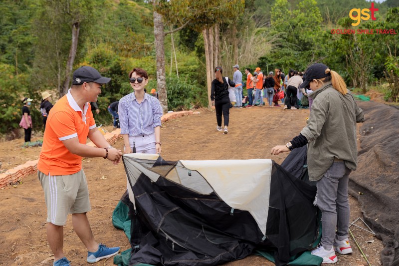 Niềm vui và sự hài lòng của khách hàng luôn là kim chỉ nam trong hoạt động của Golden Smile. Cho dù là địa hình nào, hay có khó khăn nào xảy ra, Golden Smile vẫn luôn làm hết sức để mang đến những chuyến đi du lịch, teambuilding tuyệt vời và ý nghĩa nhất cho Quý khách. Trong hai ngày cuối năm 2020 vừa qua, Golden Smile đã tổ chức thành công chuyến đi camping và teambuilding tại xã B’lá, huyện Bảo Lâm, tỉnh Lâm Đồng cho đoàn công ty Hải Phát Land.