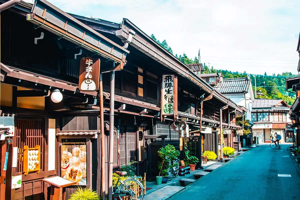- Phố cổ Takayama: Được xây dựng từ thời Edo, đến nay Takayama vẫn lưu giữ những nét kiến trúc mang phong cách thời bấy giờ một cách đậm nét và đặc trưng nhất. Những lớp tuyết đọng lại khắp nơi trên con phố khi đông về lại càng làm cảnh sắc nơi đây thêm phần lãng mạn.