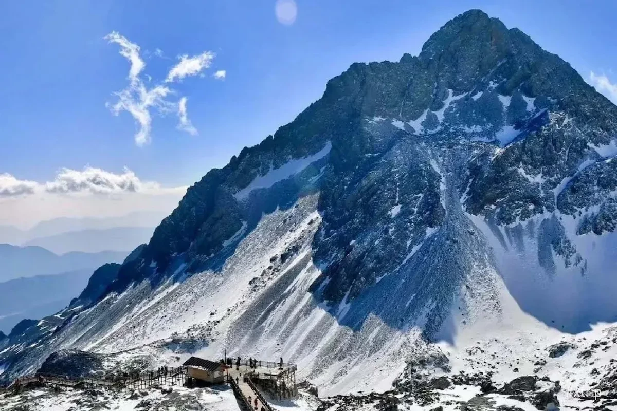 - Đi cáp treo lên đỉnh NGỌC LONG TUYẾT SƠN (đã bao gồm cáp treo Băng xuyên). Ngọn núi cao 5.596m tuyết phủ quanh năm. Phần băng vĩnh cửu ánh lên một màu xanh như ngọc.